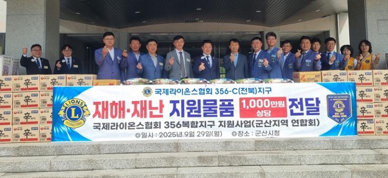 국제라이온스협회 356-C(전북)지구가 집중호우로 피해를 입은 군산지역 저소득 가구를 돕기 위해 총 1,000만 원 상당의 긴급 생필품을 군산시에 기탁했다.