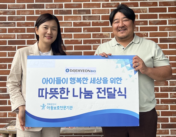 대현바이오는 제약 의료기기 1차 포장재 수입·판매와 연구실 국책사업 등을 지원하는 기업으로 지난 2020년부터 매년 군산시아동보호전문기관에 군산시 긍정양육문화 확산과 학대피해아동 지원을 위해 꾸준한 나눔을 실천해오고 있다.