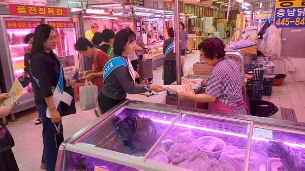 참가자들은 가게를 방문해 추석 명절 전통시장 이용하기와 성수품 부당한 가격 인상 자제와 친절 서비스 제공에 대해 동참해 줄 것을 호소했다.