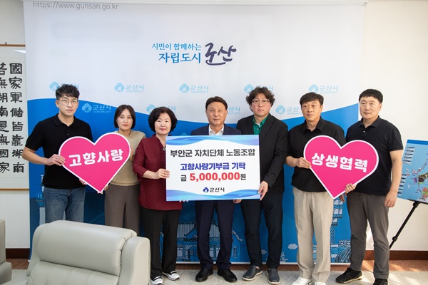 신희중 부안군 자치단체노조위원장은 "고향을 사랑하는 마음을 담아 주고받는 상호기부가 상생협력에 밑거름이 되길 바란다"고 전했다.