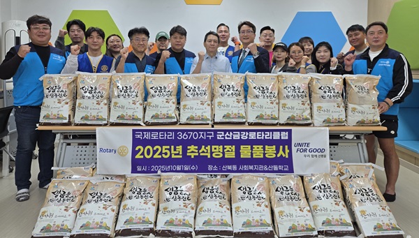 군산금강로타리클럽(회장 조성철)이 추석을 맞아 어려운 이웃들을 위해 사랑의 쌀 10kg 40포를 기탁하며 훈훈한 감동을 전했다.