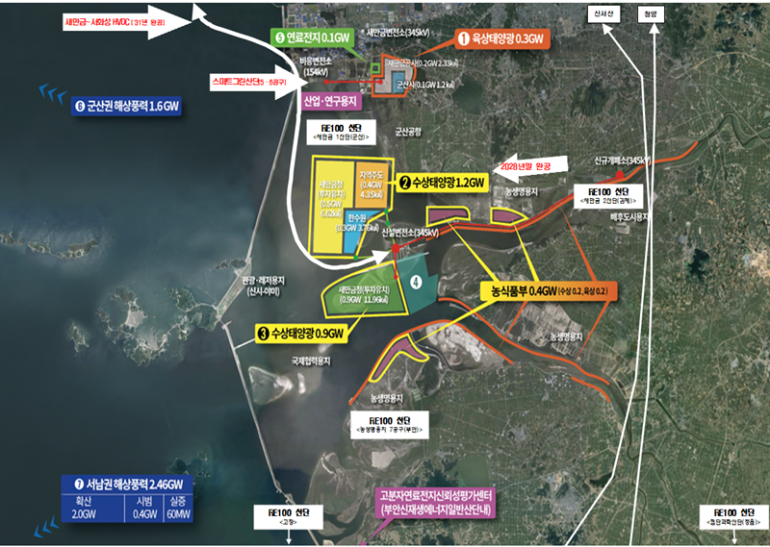 현재 태양광 3GW, 해상풍력 4GW 등 총 7GW 규모의 재생에너지 발전단지 조성이 진행중이다.