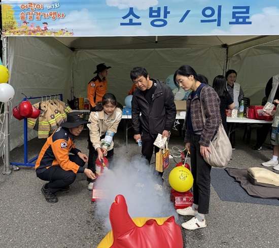 군산소방서(서장 김현철)가 지난 25일 ‘제7회 어린이 숲길 걷기행사’에서 운영한 소방안전 체험부스가 시민과 어린이들로부터 큰 호응을 얻었다.