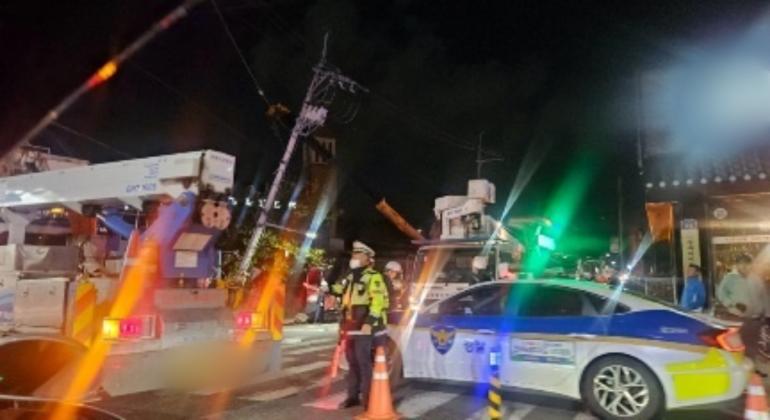 27일 오후 5시 7분 군산시 나운동 삼거리를 지나던 승용차가 전신주를 들이받는 사고가 발생했다.