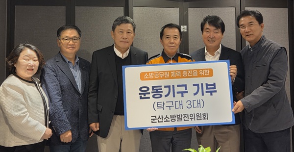 군산소방발전위원회가 소방공무원의 체력 단련과 건강증진을 위해 탁구대 3대를 군산소방서에 기탁했다.