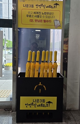 나운3동행정복지센터는 30일부터 ‘안전우산 네트워크’ 무료 우산 대여 서비스를 본격 운영한다.