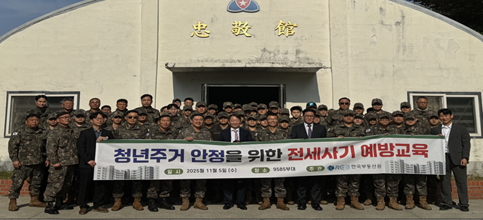 한국부동산원 군산지사(지사장 박병춘‧이하 지사)는 군산 제9585부대에 청년 주거 안정을 위한 전세사기 예방교육과 함께 기부금 100만원을 전달했다.