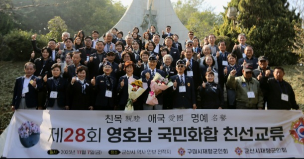 두 단체는 7일 오전 10시 월명공원 내 위치한 해병대 군산·장항·이리지구 전투 전적비에서 제28회 영호남 국민화합 친선교류 행사를 진행했다.