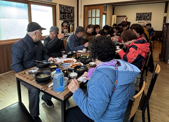 소룡동 해물나라(대표 안미영)가 13일 관내 환경정화에 힘쓰고 있는 산소연안봉사단 30여 명에게 따뜻한 점심식사를 대접했다.