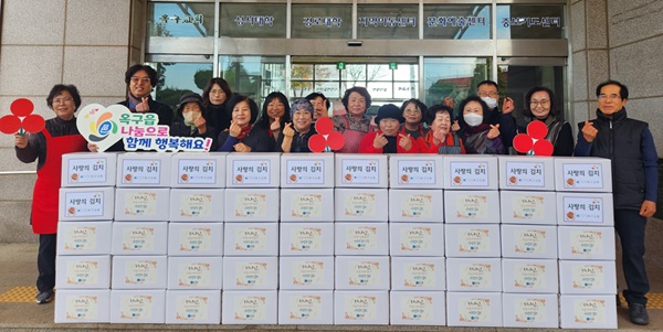 옥구교회는 18일 옥구읍행정복지센터(읍장 손수경)에 김장김치 10kg 50박스를 기탁했다.