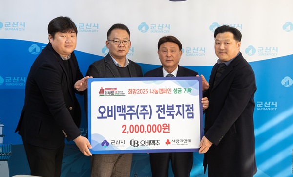 강임준 시장은 “매년 잊지 않고 나눔을 실천해 주시는 오비맥주㈜ 전북지점에 진심으로 감사드린다”며 “전달된 성금은 도움이 필요한 이웃들에게 소중히 쓰일 수 있도록 하겠다”고 말했다.