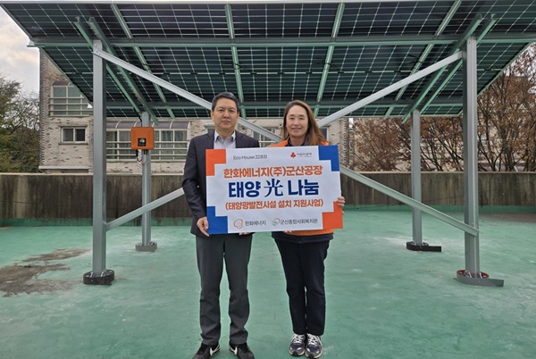 한화에너지(주) 군산공장이 사회공헌활동 일환으로 군산종합사회복지관(이하 복지관)에 태양광발전시설을 지원했다.