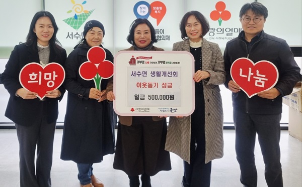 서수면 생활개선회는 지난 19일 서수면행정복지센터(면장 문현순)를 방문해 이웃돕기 성금 50여만 원을 기탁했다.