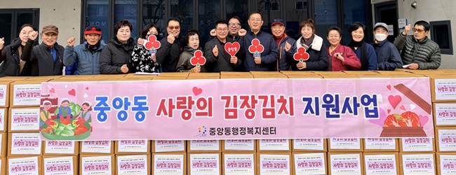 김종훈 중앙동장은 “이번 김장김치 나눔이 겨울철 어려움속에 있는 주민들에게 작은 힘이 되길 바란다”며 “어르신들과 지역주민들이 체감할 수 있는 따뜻한 중앙동이 되도록 최선을 다하겠다”고 말했다.