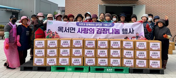 옥서면 지사협 주최, 옥서면 부녀회가 주관한 이번 행사는 관내 저소득가구 50세대에 직접 담근 김장김치 10kg씩을 전달했으며 이웃사랑 실천을 위해 수년째 이어오고 있다.
