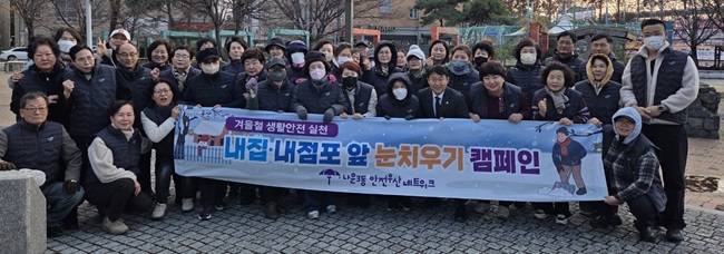 나운3동 안전협의체인 안전우산 네트워크는 지난 27일 오후 4시부터 군산대 앞 상가 일원에서 겨울철 생활안전 실천 일환으로 ‘내 집‧내 점포 앞 눈 치우기 캠페인’을 펼쳤다.