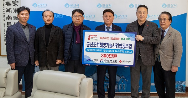 군산조선해양기술사업협동조합(이사장 김광중)이 4일 희망2026나눔캠페인 기간을 맞아 어려운 이웃들을 위해 성금 300만 원을 군산시에 기탁했다.