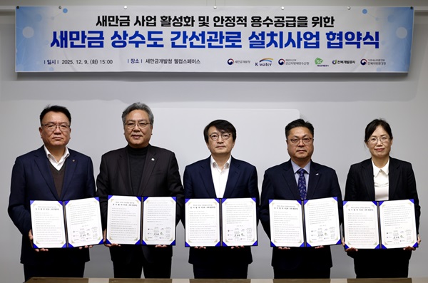 새만금개발청(청장 김의겸)은 9일 새만금 지역 내 상수도 수요 기관과 ‘새만금 상수도 간선관로 설치사업 실시협약’을 체결했다.