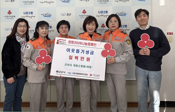 군산여성의용소방대(대장 서영희)가 이웃돕기 성금을 기탁하며 지역사회에 온정을 전했다.