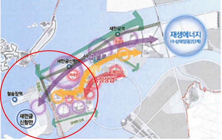 실제 새만금특별법에 새만금사업지역을 “방조제와 방조제 안쪽 토지·호소 등 대통령령으로 정하는 지역”으로 명시하고 있어 방조제 외측에 위치한 신항은 범위에 포함되지 않는다.