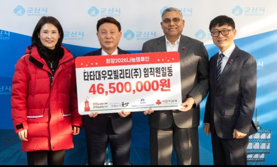 타타대우모빌리티㈜(대표 김태성)가 ‘희망 2026 나눔 캠페인’ 에 동참하며 기업과 임직원이 함께 마련한 이웃돕기 성금 4,650만 원을 군산시에 전달했다.