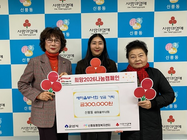 신풍동 새마을부녀회(회장 송미숙)가 지역사회 복지향상을 위해 성금 30만원을 신풍동행정복지센터에 기탁했다.