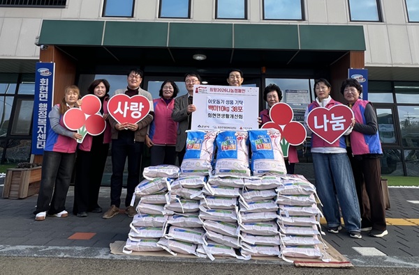 회현면생활개선회(회장 박은실)가 지역의 어려운 이웃들에게 따뜻한 겨울을 날 수 있도록 백미 10㎏ 38포(100만원 상당)를 12일 기탁했다.