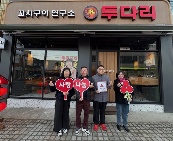 이삼석 민간위원장은 “경제적으로 어려운 상황속에서도 따뜻한 나눔에 동참해주신 전북화원 정명자 대표, 투다리 나운동백점 최재환 대표에 감사드린다”며 “지역사회 나눔 문화 확산에 함께해주길 기대한다”고 전했다.