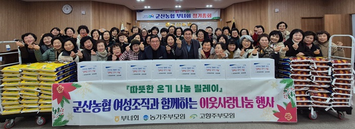 군산농협 여성단체인 부녀회(회장 최경순), 농가주부모임(회장 장화순), 고향주부모임(회장 김성희)이 지역사회를 위한 온기 나눔 활동을 펼쳤다.
