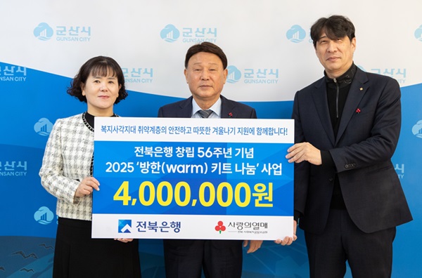 이승훈 군산시청 지점장은 “추운 겨울을 앞두고 어려움을 겪는 이웃들에게 작게나마 따뜻한 도움이 되길 바란다”며 “지역사회와 상생하는 금융기관으로서 지속적 나눔과 사회공헌 활동을 이어가겠다”고 말했다.