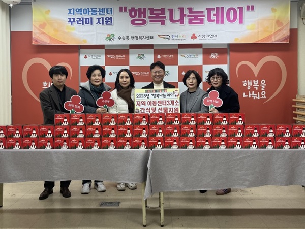 수송동 천사누리지역사회보장협의체가 성탄절을 맞아 취약층 아동에게 따뜻한 나눔을 실천했다.