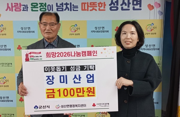 성산면 소재 장미산업(대표 문정욱)이 지역의 어려운 이웃을 위해 100만원의 성금을 기탁했다.