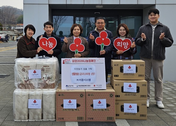개정면 ㈜서광시스템(대표 황미경)이 어려운 이웃에게 전달해달라며 50만원 상당 생활용품(롤화장지‧물티슈 등)을 기탁했다.