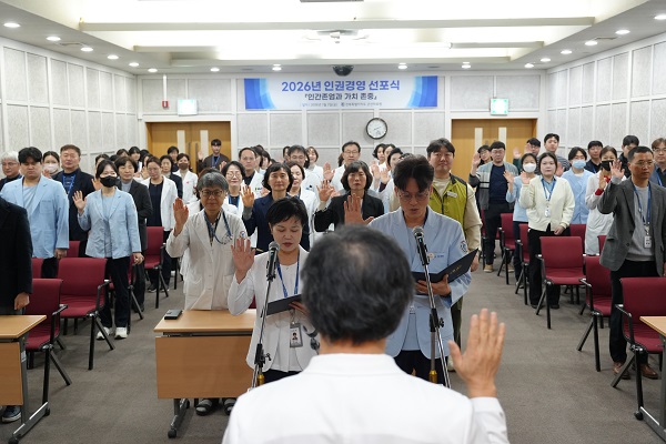 이번 행사는 2026년도 시무식과 연계해 진행된 것으로 군산의료원이 추구하는 미션과 비전, 인권경영에 대한 핵심 가치를 직원들과 공유하고 새해 경영 방향과 실천 의지를 대내외에 선포하기 위해 마련됐다.