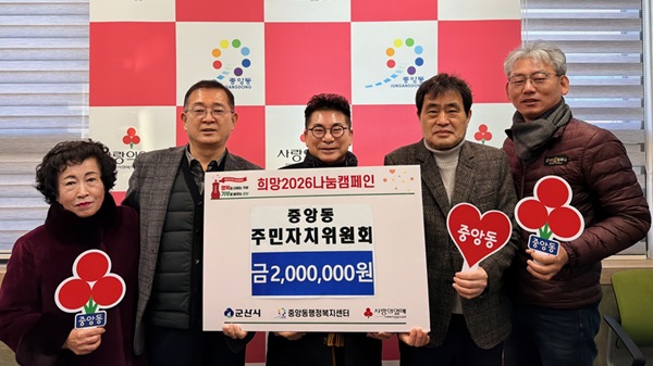중앙동 주민자치위원회(위원장 김성호)가 6일 소외이웃을 돕기 위한 성금 200만원을 기탁하며 ‘희망2026 나눔캠페인’에 동참했다.