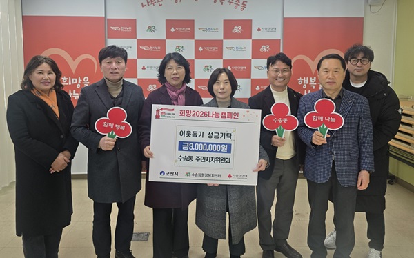 수송동 주민자치위원회(위원장 이미아)가 이웃돕기 성금 300만원을 기탁하며 ‘희망 2026 나눔 캠페인’에 동참했다.