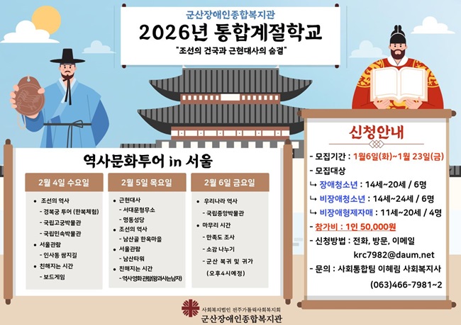 군산장애인종합복지관(관장 이명재)은 오는 2월 4~6일 2박3일간 서울에서 통합계절학교를 진행한다고 밝혔다.