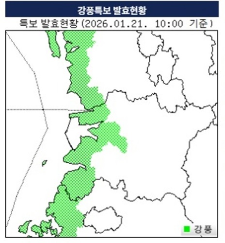강풍주의보는 오는 22일 밤에 해제될 것으로 예고됐다.