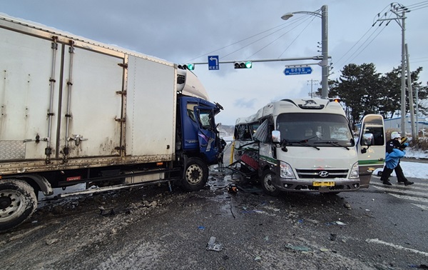 ◇겨울철 블랙아이스로 인해 발생한 교통사고 현장.