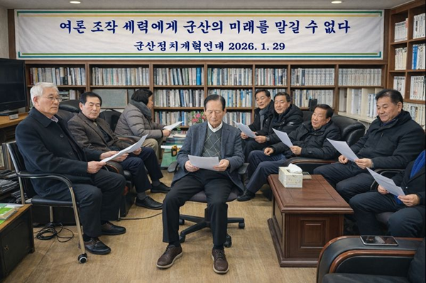 김철규 전 전북도의회 의장 등 10여 명은 지난 29일 전북정책연구회 사무실에서 ‘군산정치개혁연대’를 결성하고 “민주주의를 유린한 여론조작 세력에게 군산 미래를 맡길 수 없다”며 이같이 촉구했다.