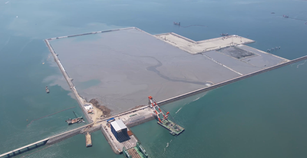 ◇지난해 가을 드론으로 촬영한 새만금신항만 공사현장 (사진=군산시 제공).