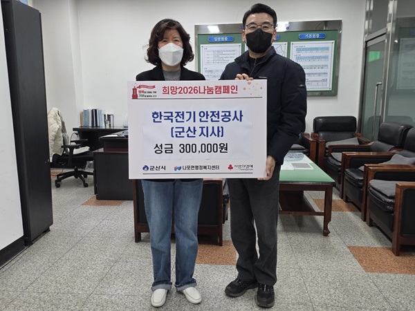한편, 한국전기안전공사 군산지사는 매년 명절마다 성금 기탁은 물론 취약층 가구 전기 설비 안전 점검과 노후 등기구 교체 등 사회적 책임을 다하고 있다.