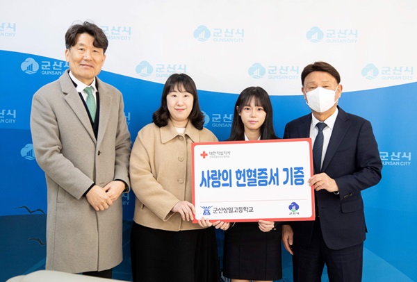 시는 25일 군산상일고 학생들로부터 기증받은 헌혈증 66매를 지역 내 원활한 혈액 수급 지원을 위해 대한적십자사 전북혈액원에 전달했다.