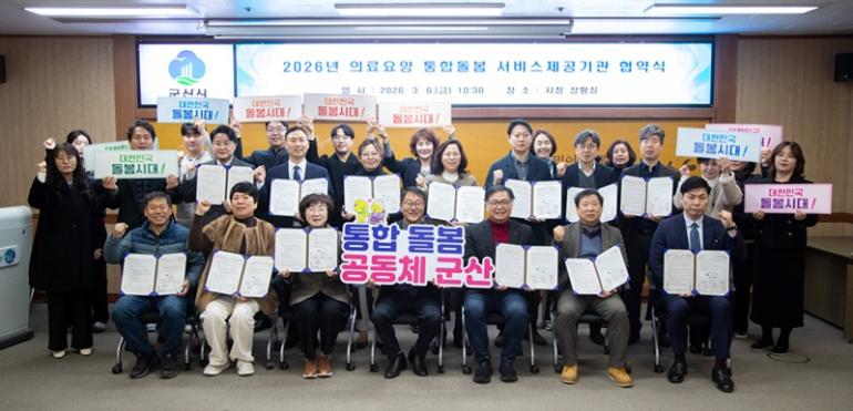 군산시가 의료·요양 통합돌봄 지역특화사업의 본격 추진을 위해 서비스 제공기관 14개소와 업무협약을 체결하고 지역사회 중심 돌봄체계 구축에 나섰다.