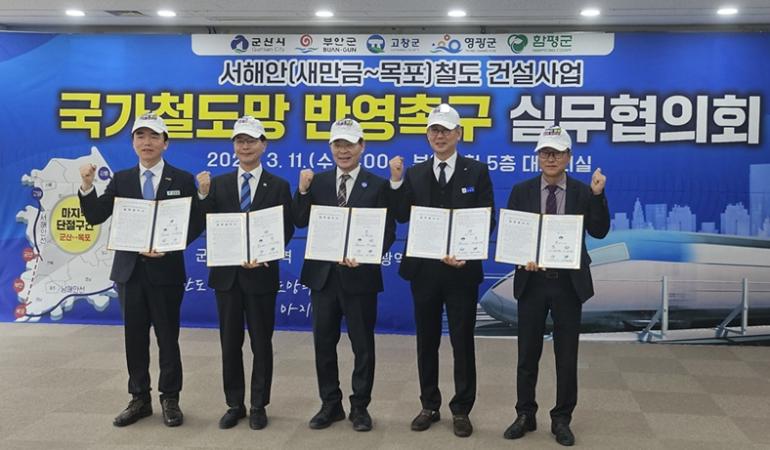 이번 협의회는 서해안철도가 경유하는 군산시·부안군·고창군·영광군·함평군 지자체장 및 관계 공무원들이 참석해 서해안철도 사업 추진 현황을 공유하고 향후 공동 대응 방안을 논의했다.
