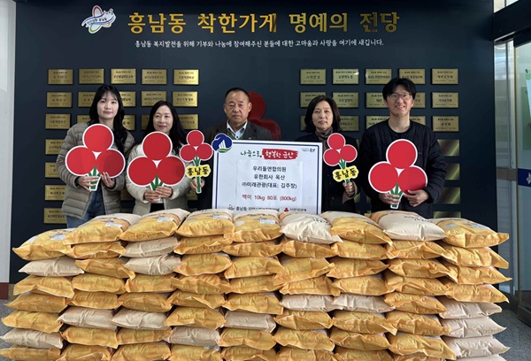 흥남동에 따르면 우리들연합의원(원장 고광환)과 유한회사 옥산(대표 문황열), 김주창 ㈜미래관광 대표는 15일 어려운 이웃을 위해 써달라며 백미 10kg 80포(총 800kg)를 기탁했다.