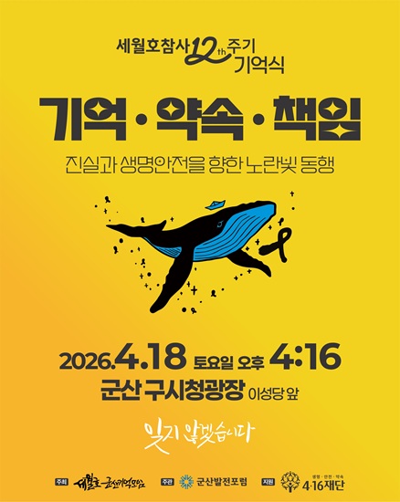 세월호 군산기억모임은 오는 18일 군산 구시청광장에서 ‘진실과 생명안전을 향한 노란빛 동행’을 주제로 기억식과 시민 참여 프로그램을 진행한다고 밝혔다.