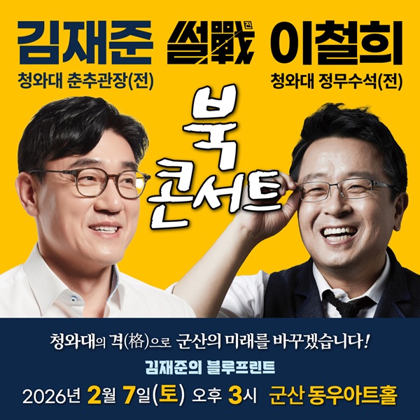 그의 고향인 군산에서 열리는 이번 북콘서트에는 JTBC 시사 프로그램 썰전의 패널로 유명한 이철희 전 청와대 정무수석이 특별 게스트로 참여해 자리를 빛내줄 예정이다.