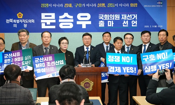 문승우 전북자치도의회 의장이 오는 6월 3일 지방선거와 동시에 실시되는 군산·김제·부안갑 국회의원 재선거 출마를 공식 선언했다.