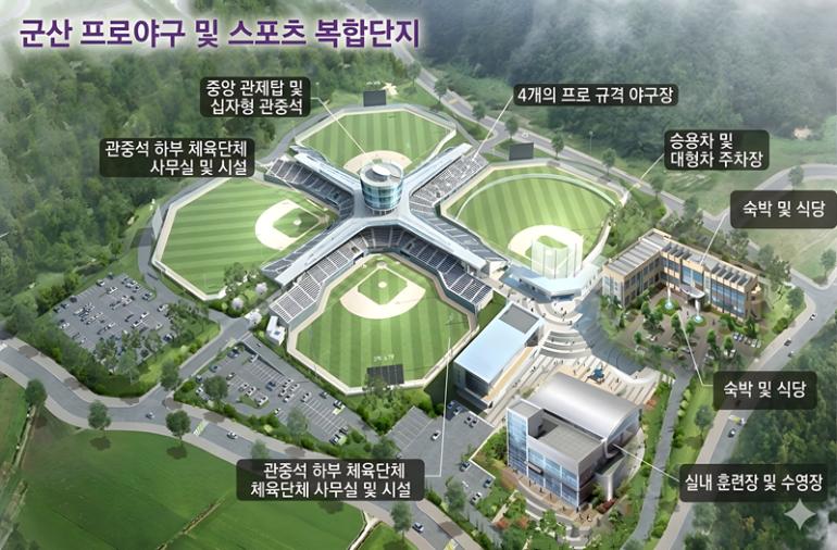 해당 시설은 1군 경기 규격의 메인 구장 1면과 훈련 및 대회용 구장 3면을 포함하며 중앙 관제 시스템과 입체형 관중석을 갖춘 최신형 야구 인프라로 구축된다.